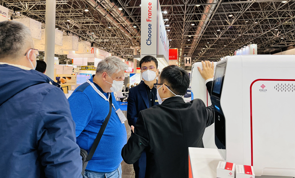 巴西一位合作多年的客户特意来到yabo鸭脖官网展台,沟通四通道iPonatic合作事宜。在听取工作人员的详细介绍并观看操作后,他表示,“你们的POCT可搭载的项目很多,正是我们所需要的,我们非常感兴趣。”