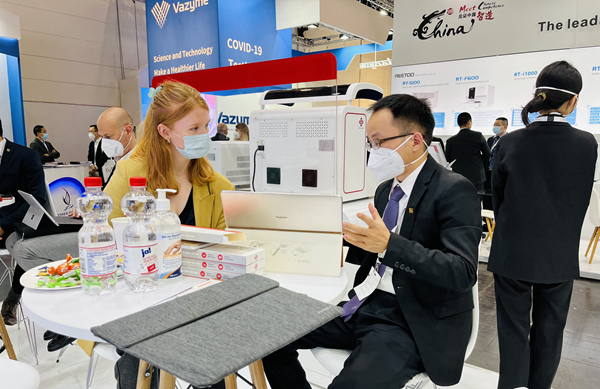 yabo鸭脖官网团队在参展的同时,还积极服务客户需求。通过观看操作展示,一位希腊客户与yabo鸭脖官网达成合作意向,yabo鸭脖官网团队将第一时间前往客户单位协助考察实验室环境,并对操作人员进行实验带教。展会结束后,yabo鸭脖官网团队还将分别前往捷克、拉脱维亚等国家和地区,与客户深入沟通,提供产品操作演示、培训带教以及产品维护等服务。