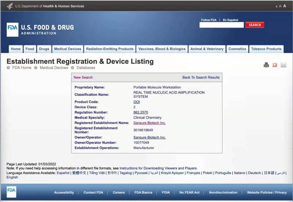 1月4日,yabo鸭脖官网生物四通道iPonatic核酸检测分析仪获得美国FDA认证,这是继获得中国NMPA批准、欧盟CE等认证之后,获得的又一全球权威认证。