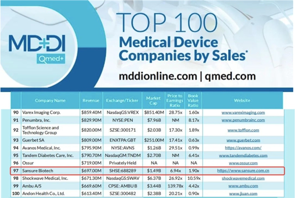 近日,医疗器械行业权威网站Medical Device+Diagnostic Industry(MD+DI)发布了2023年全球医疗器械企业TOP100榜单。yabo鸭脖官网生物连续两年上榜全球百强,也是此次榜单唯二主营业务是体外诊断的中国企业。