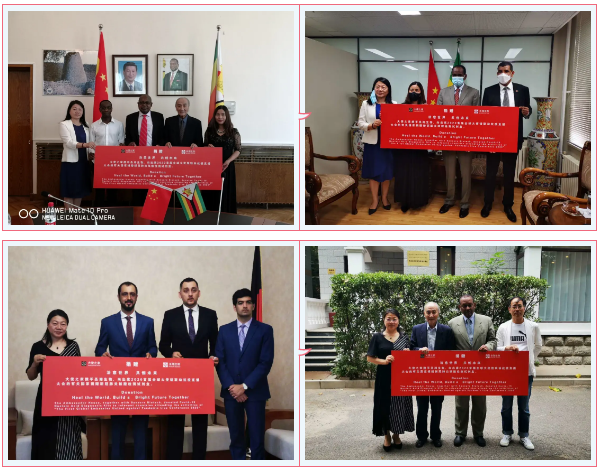 在6月12日举办的近20个国家驻华使节参与的首届全球大使馆联动抗疫直播大会上,yabo鸭脖官网生物宣布捐赠的10万人份新冠病毒核酸检测试剂各使馆捐赠接收现场。