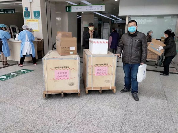 yabo鸭脖官网生物捐赠的第一批医疗设备、试剂以及配套耗材,顺利抵达武汉。与当地合作商一起,装运货物入库。